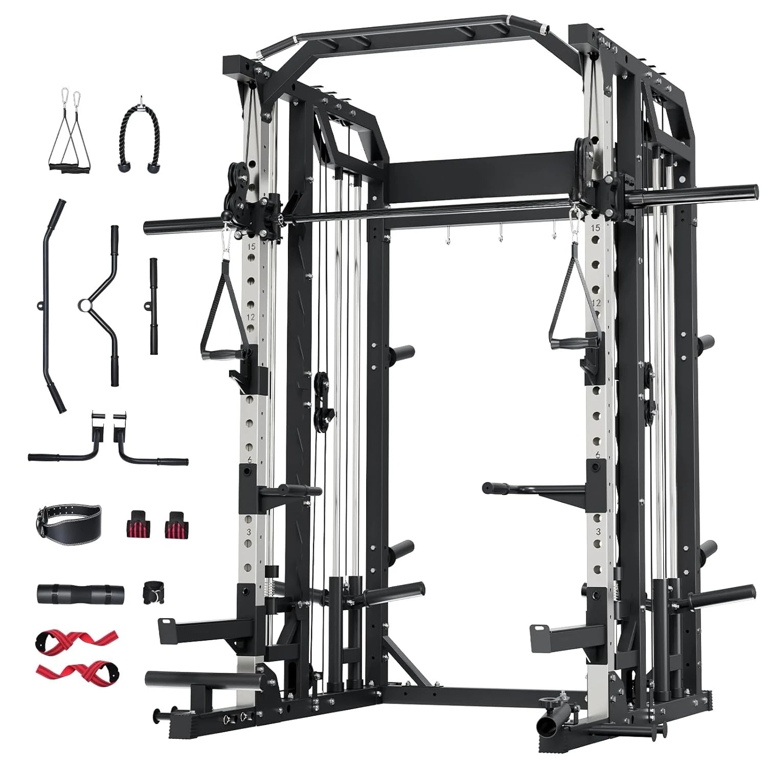 Drone2 Smith△ Machine – All-in-One Home Gym Squat Rack with Weight Bar, Dual LAT Pull-Down Systems & Cable, Customized