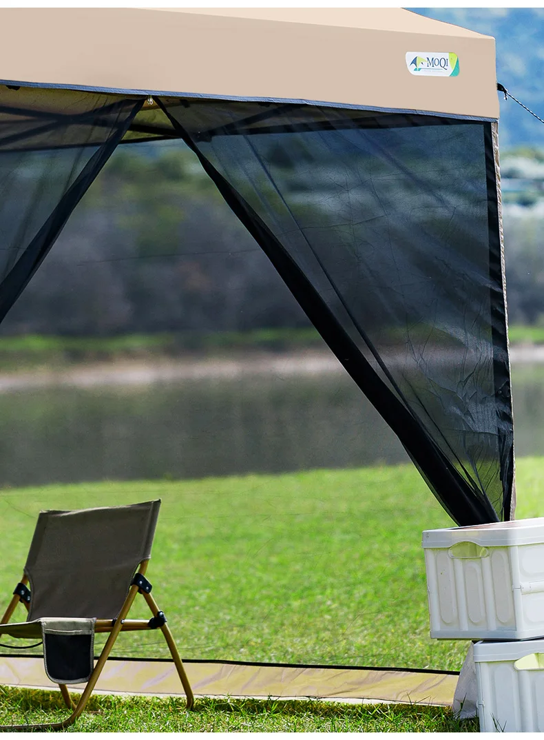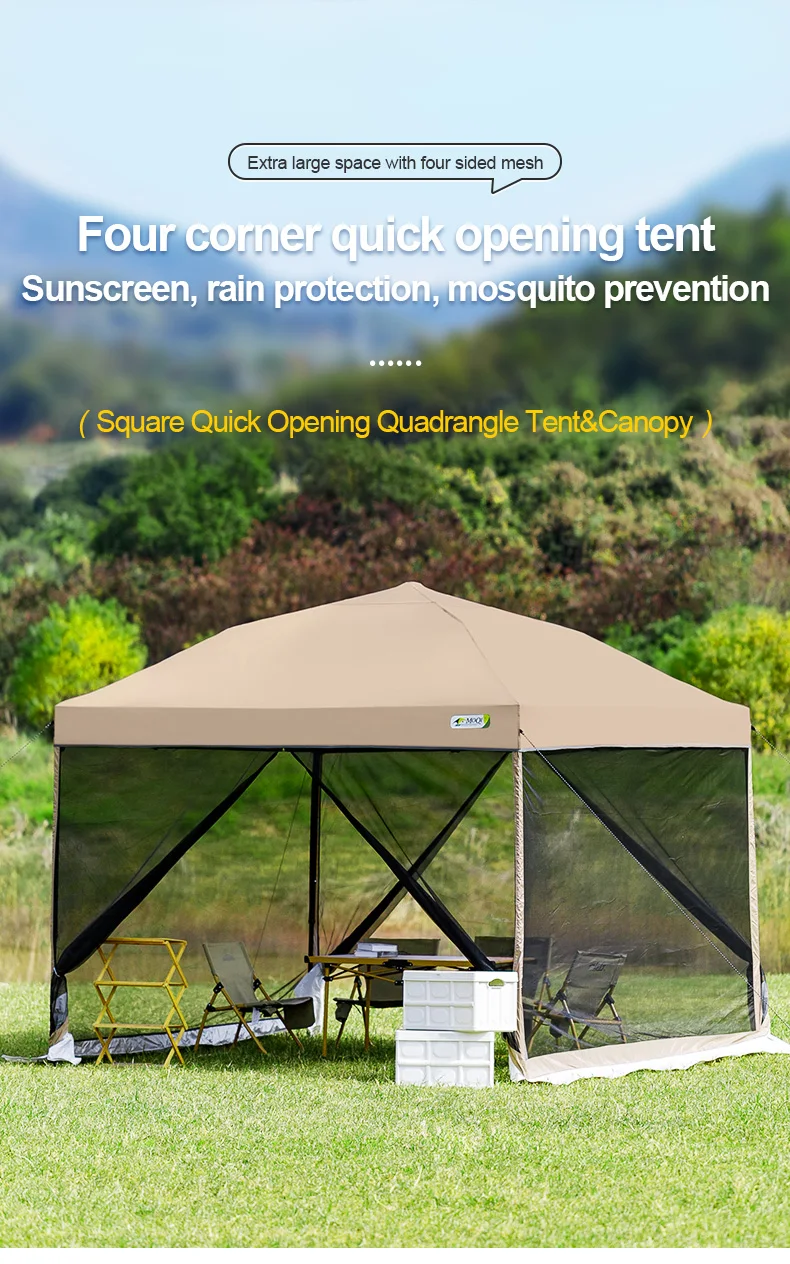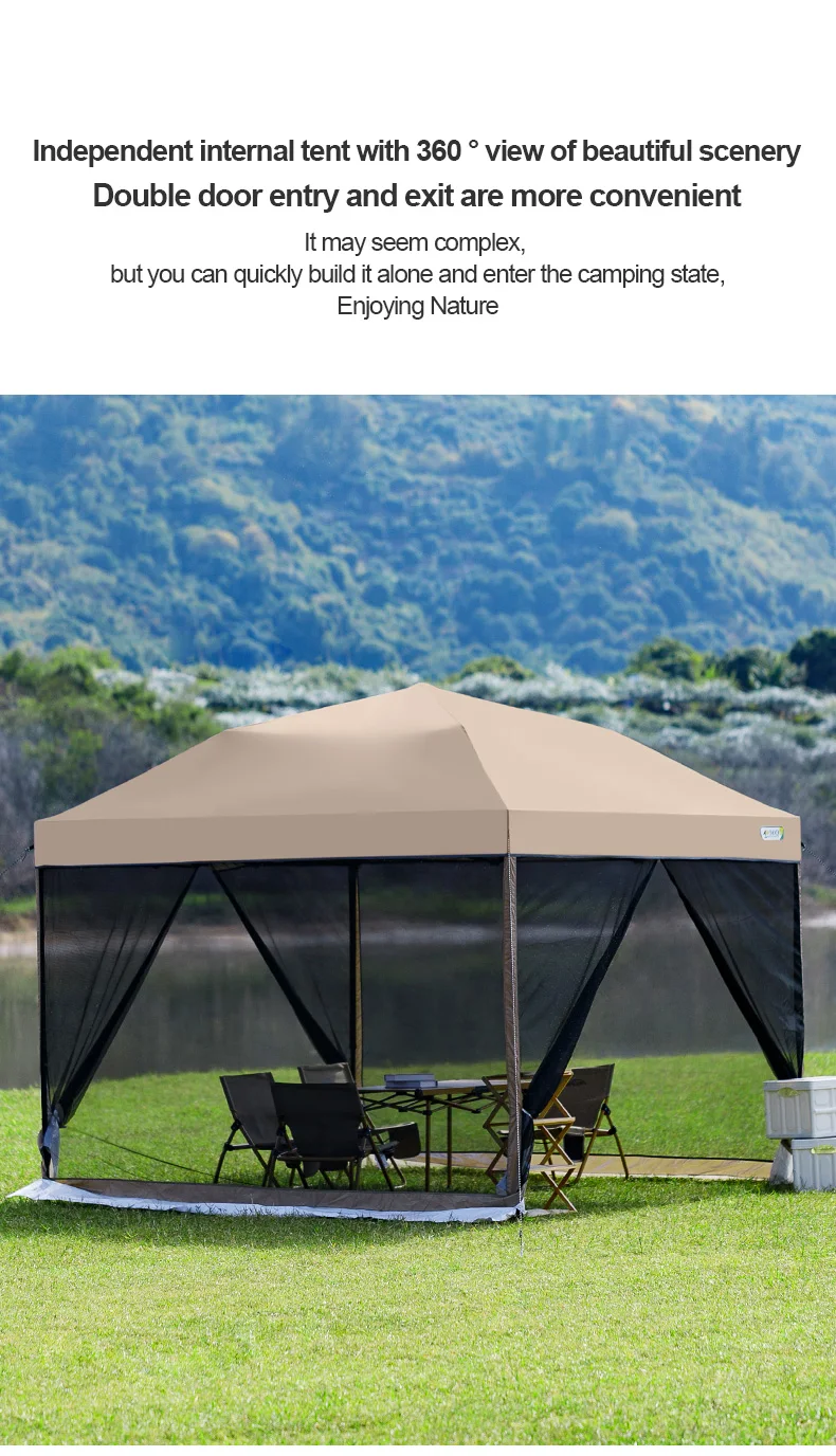Outdoor pop-up awning beach camping instant canopy pavilion tent with side wall 10x10 feet khaki sunscreen rainstorm proof