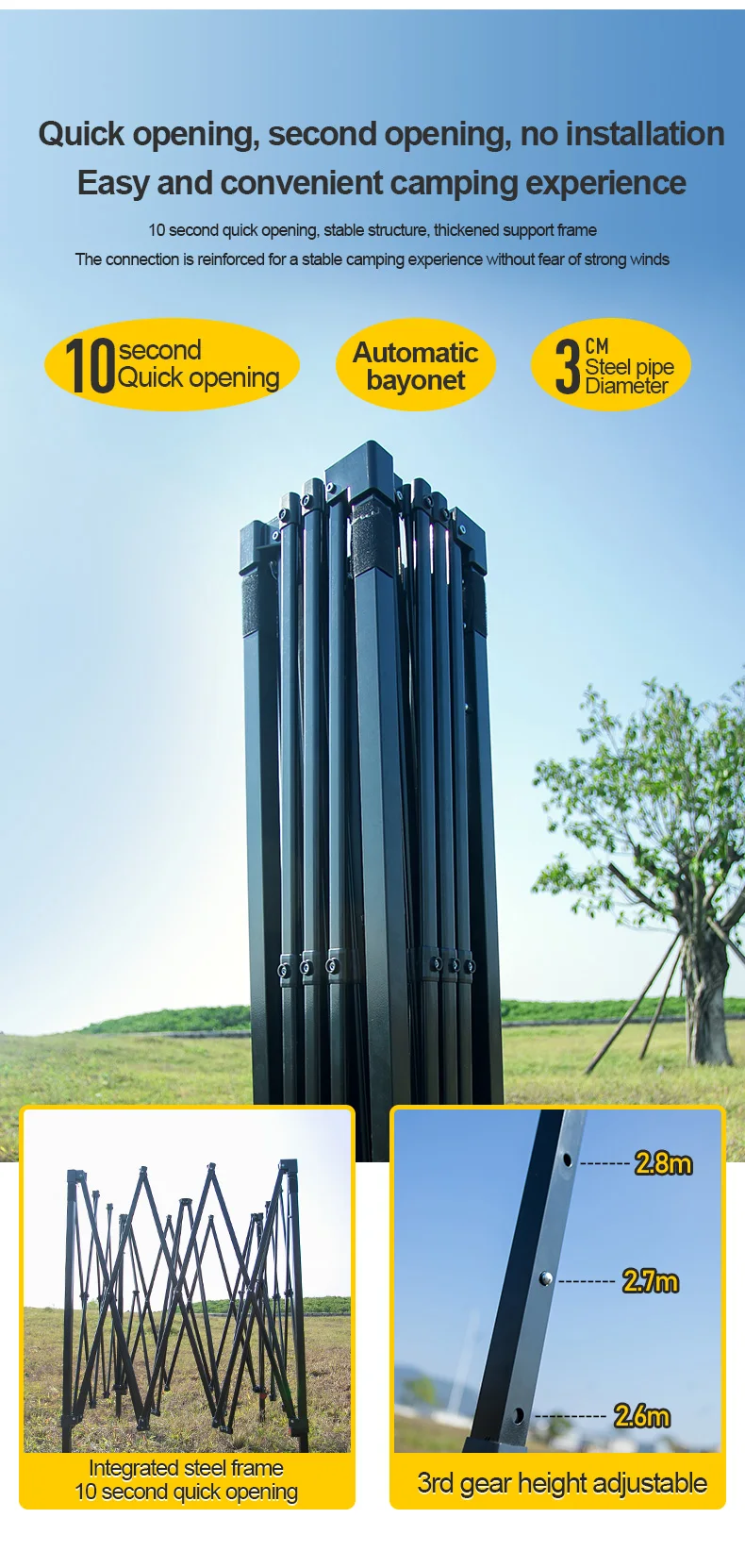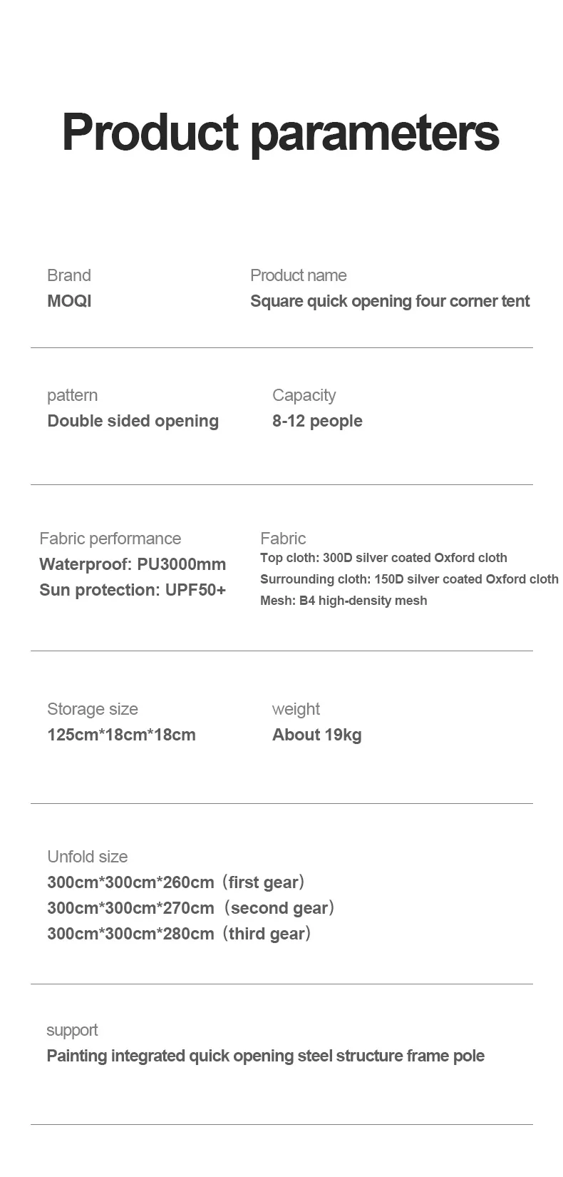 Unfolded size: 300 * 300 * 260/270/280cm (height can be freely adjusted)