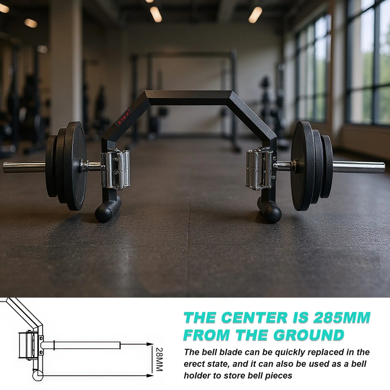 Rackable Open Trap Bar Wear Resist Deadlift Squat Barbell Hexagonal Barbell Squat Bar for Deadlift Carries Lunges SquatsFeatures: 1.Versatile Grip Options: Easily switch between three different handle diameters with the rackable open trap bar, featuring a stand-up design that makes adding and removing plates more convenient during workouts. 2.Multipurpose Fitness Training: Elevate your strength training routines using the open-ended weightlifting barbell, ideal for deadlifts, squats, farmer's walks, and other essential full-body exercises. 3.Professional Hex Frame Structure: This hexagonal barbell squat bar is constructed from 50*50*3.0 tubing, providing solid support and long-lasting durability for intensive gym sessions at any level. 4.Noise-Reducing Plated Sleeves: Fitted with a chromed sleeve assembly and rubber buffer pads, the deadlift squat barbell helps minimize plate impact noise, ensuring a quieter fitness environment. 5.Extra-Long Plate Area: The weight equipment trap bar boasts an effective plate zone of 400MM, with a 285MM center height, allowing quick standing changes and functioning as a plate rack for easy storage. Specification: Origin: Mainland China Type of sports: Strength Training Type: Electroplate Product size: 1887.00x644.00x366.00mm/74.29x25.35x14.41inch Note: