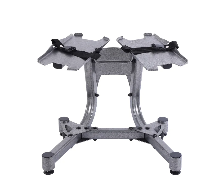 Iron frame, spraying plastic, anti-rust, anti-corrosion, durable material and finish is built to last. Capacity up to 100kg/220lbs. Suitable for putting two adjustable dumbbells at the same time.